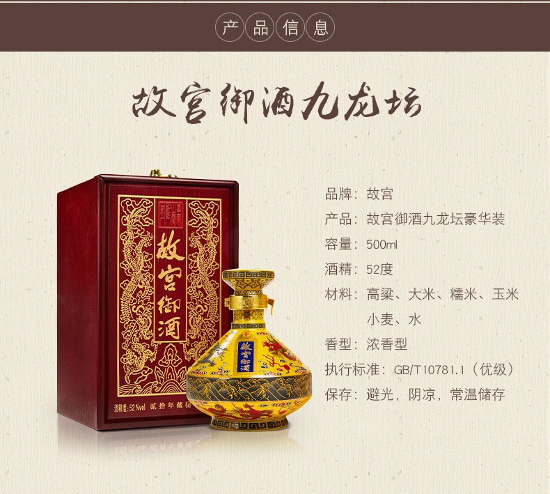 故宫白酒 九龙坛御酒52度500ml木盒精装 浓香型白酒