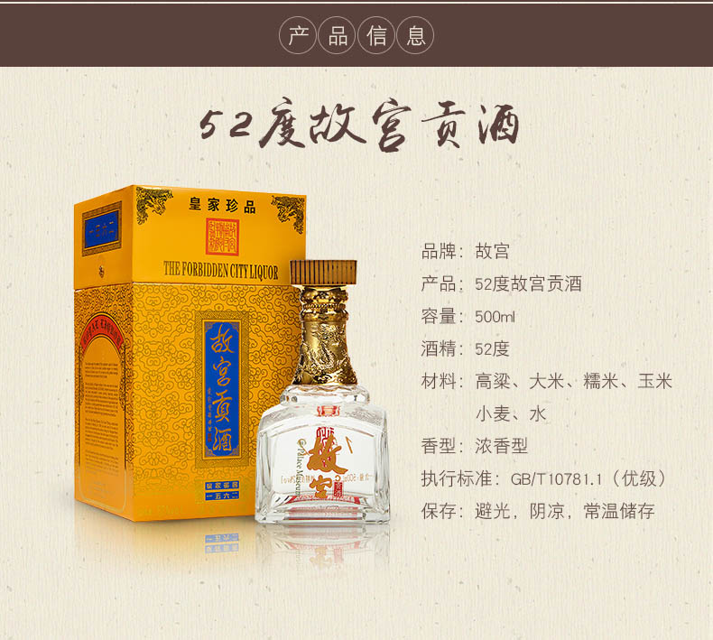 故宫白酒 故宫贡酒52度500ml 浓香型白酒
